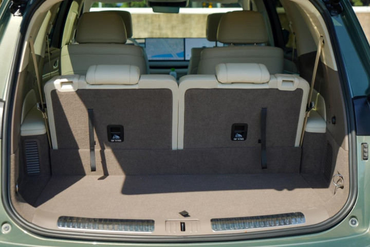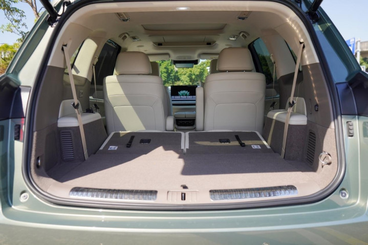 不过在满足最大乘坐空间的同时,后备厢注定是会受到一定影响,对于产品而言,只能说够用,不过目前第三排座椅也支持纯平放倒,在一定场景下也能够提供足够的储物空间。