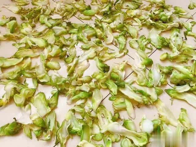 记得晚上要收回来,不然露水会打湿它,每天翻动一次,让它晒得均匀,判断是否晒干的标准是——儿菜干变得硬脆,一掰就断。