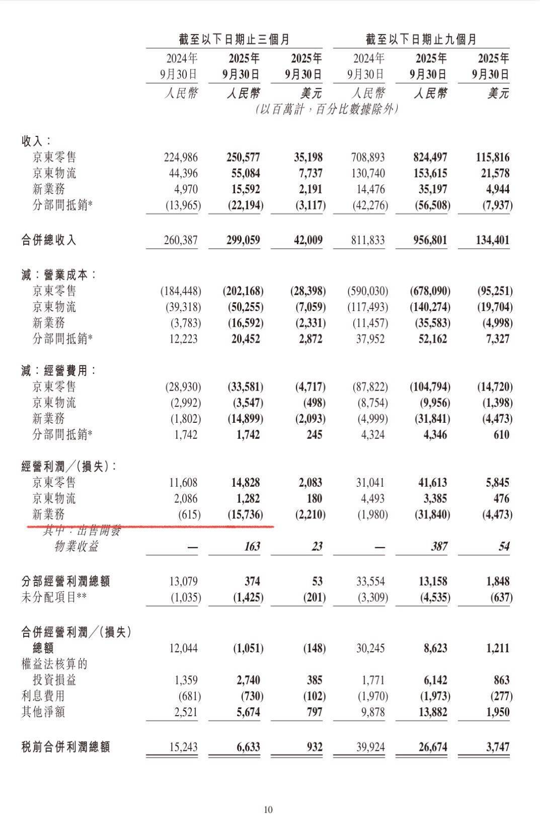 11月13日,首年度参与外卖的京东集团,发布了2025年三季度业绩。本季度,京东集团收入为2991亿元人民币,同比增长15%,超出预期,归属股东净利润53亿元,同比下降55%。包含京东外卖等新业务依然是拖累净利润的重要原因,但随着运营效率的提升,本季度京东新业务单元的经营利润率已经开始有所改善。